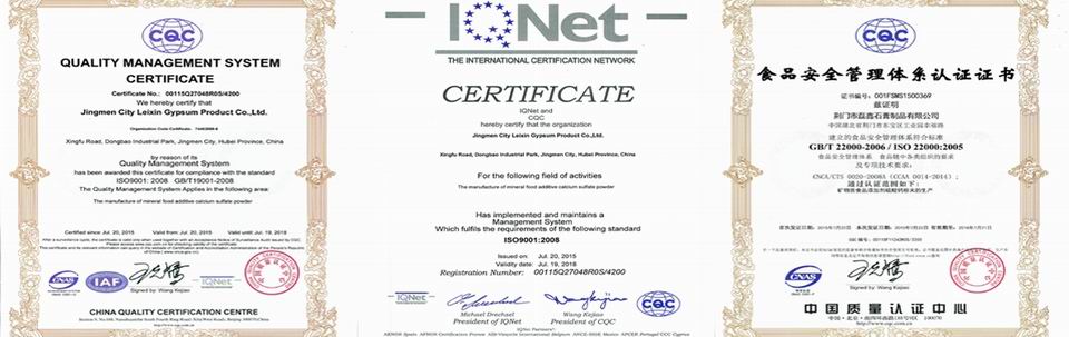 荊門市磊鑫石膏製品有限公司は石膏製品の研究、生産と販売を一體にして、一流の技術(shù)的な企業(yè)である。工場は荊門市東寶工業(yè)園に位置して、面積も25000平方メートルになります。當(dāng)社は磊鑫、杰普生、凱氏蘇特という三つの商標(biāo)をもって、特許も二つがある。主な製品は醫(yī)薬品グレード製品、食品グレード製品、農(nóng)業(yè)グレード製品と建築材料などがある。経済的な価格と最高の品質(zhì)で、當(dāng)社は優(yōu)秀な製造商として、世界中に多くの有名な企業(yè)と協(xié)力しています。インポートとエクスポートの権利を持って、當(dāng)社の製品は韓國、日本、ロシア、ヨーロッパなどのマーケットにもよく販売されています。お客様に対して、神様のように正直します、お品質(zhì)に対して、命のように頑張ります。當(dāng)社と協(xié)力することはあなたの正しい選択で、共に進(jìn)むことはわたしたちの同じ目標(biāo)である。今後ともご指導(dǎo)ご支援を賜りますよう、どうぞよろしくお願(yuàn)い申し上げます。 ――中國最高の石膏(硫酸カルシウム)製造商になる ――CGC·磊鑫石膏